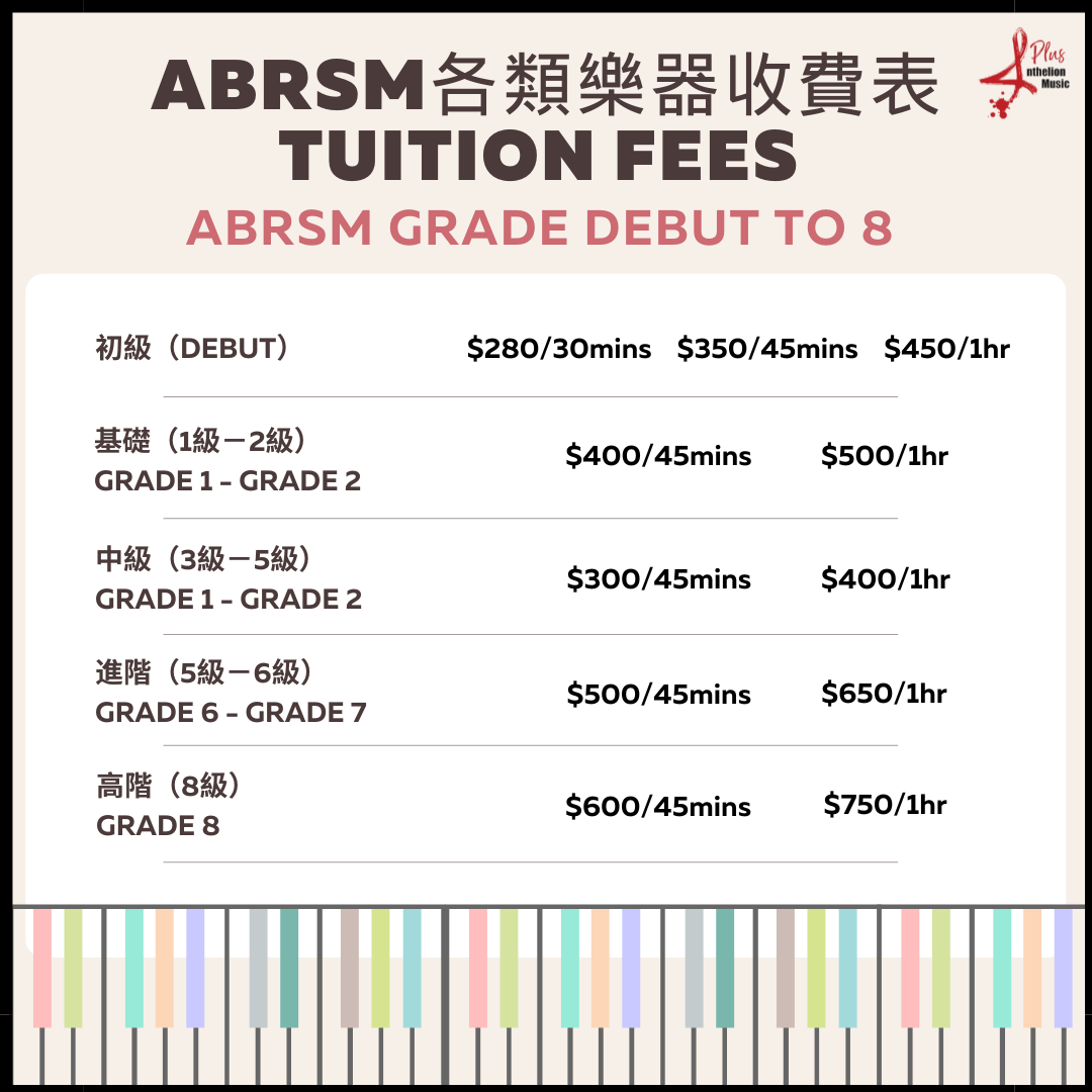 全部導師均考獲《皇家音樂學院》所頒發的演奏級資格