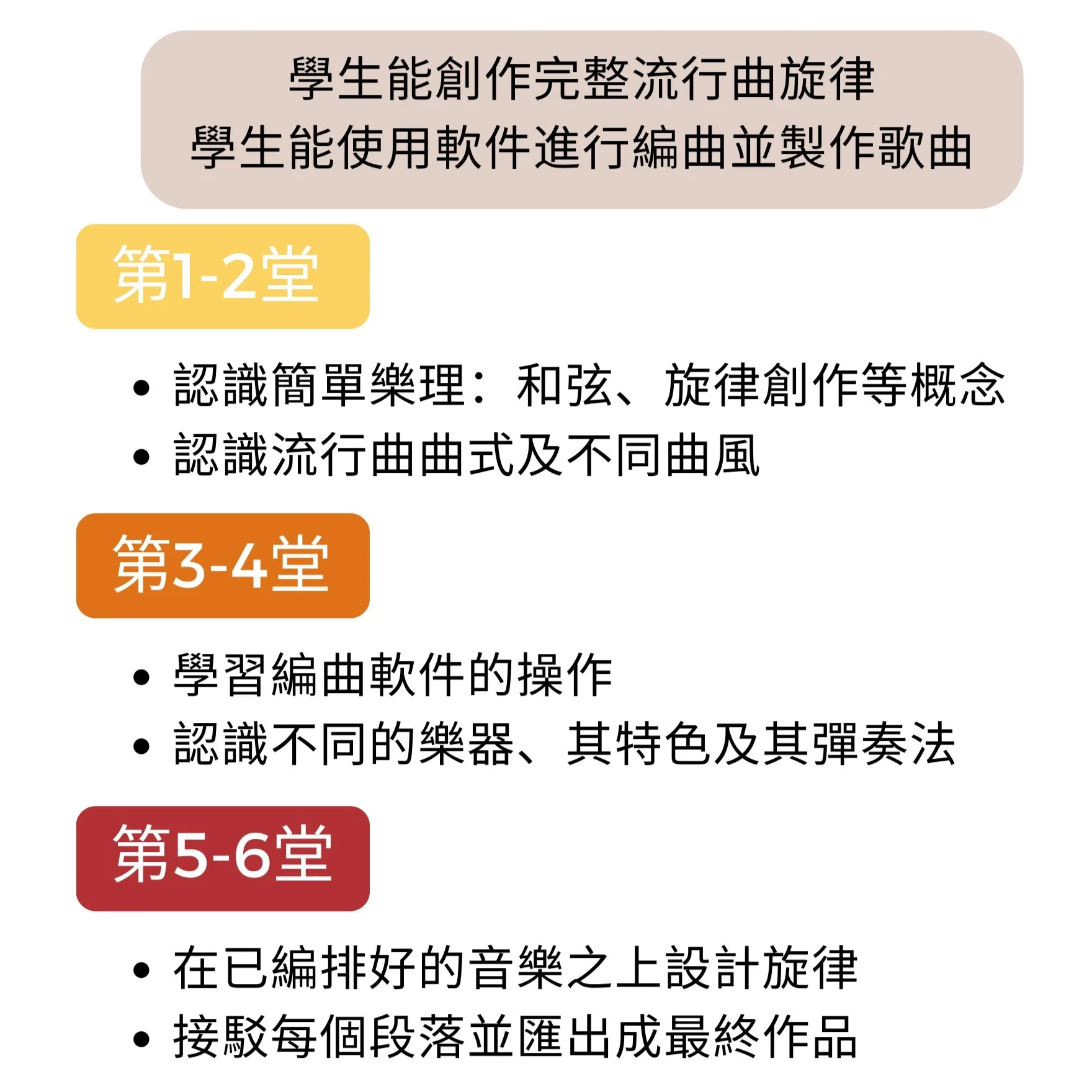 完成6堂課堂後,更可涵接其他相關課程(作曲/編曲/流行鋼琴)。