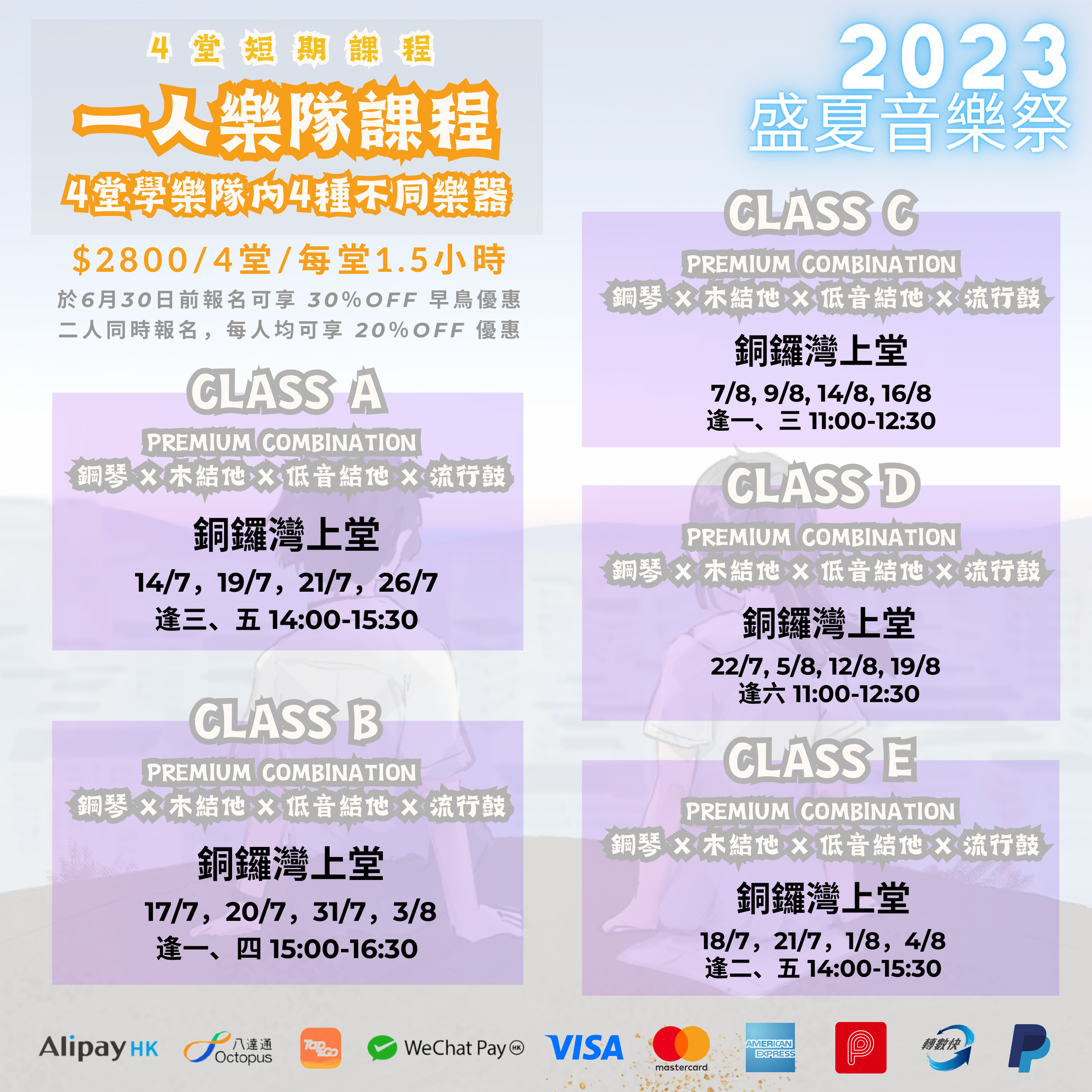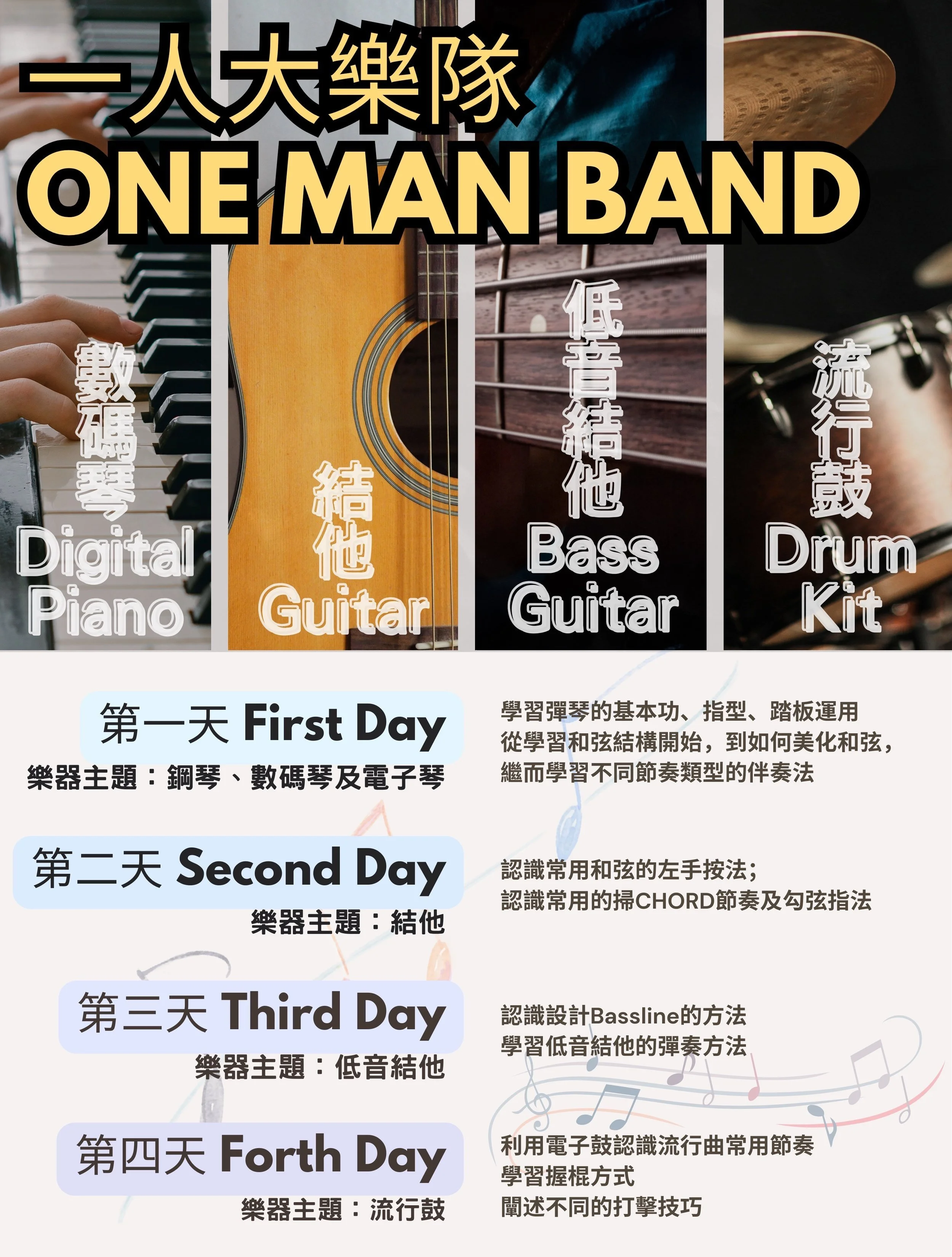 除了這課程外,我們在暑期更舉辦了其他不同的期間限定或短期課程,內容涵蓋面廣,涉獵流行音樂中的不同領域。對象除了中學生與大專生,亦包括成人、小學生,以及幼稚園生,快來了解更多我們的課程吧!