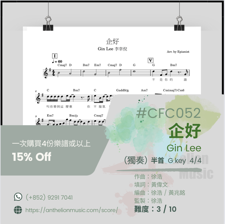 ⟪ 企好 ⟫ [右手主旋律五線譜+ CHORDs// 獨奏譜]