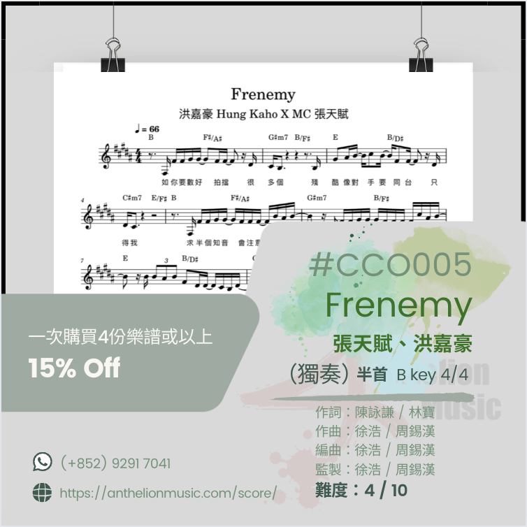 ⟪Frenemy⟫ [右手主旋律五線譜+ CHORDs// 獨奏譜]