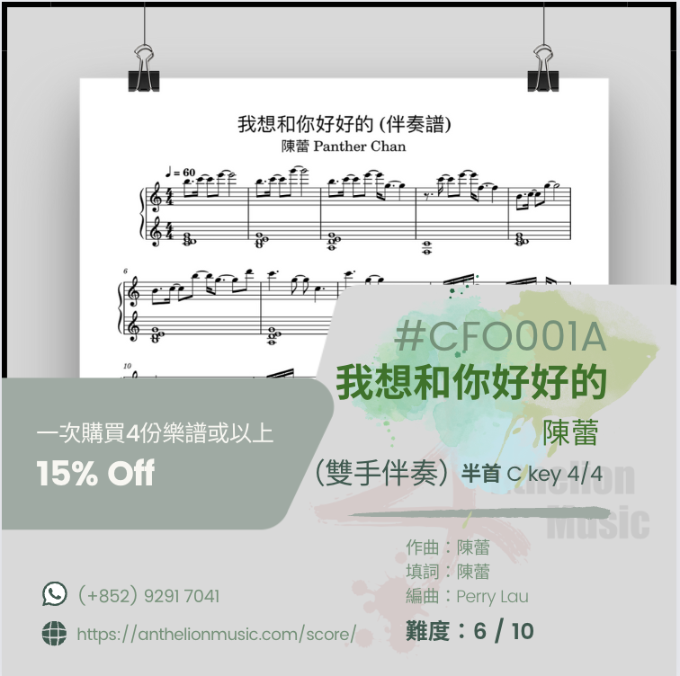 August 10, 2023 ⟪我想和你好好的⟫ [伴奏譜] August 10, 2023/ JOYA. C #CFO001A$150 半首(雙手伴奏)#CFC002AF$170 全首 (雙手伴奏) 🍃購買四首或以上可享有85折優專🍃此版本為伴奏樂譜,即為歌者伴奏或自彈自唱適用💮