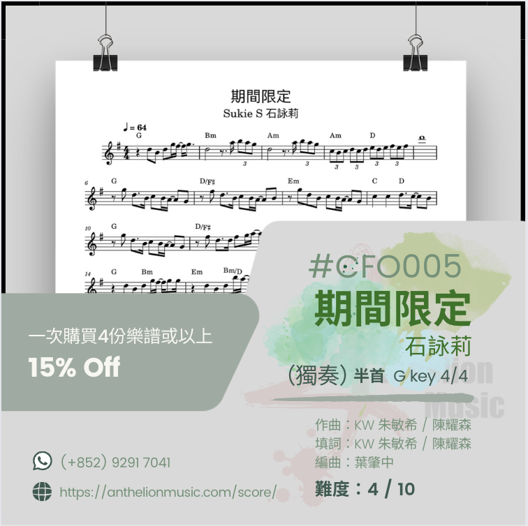 ⟪期間限定⟫ [右手主旋律五線譜+ CHORDs// 獨奏譜]