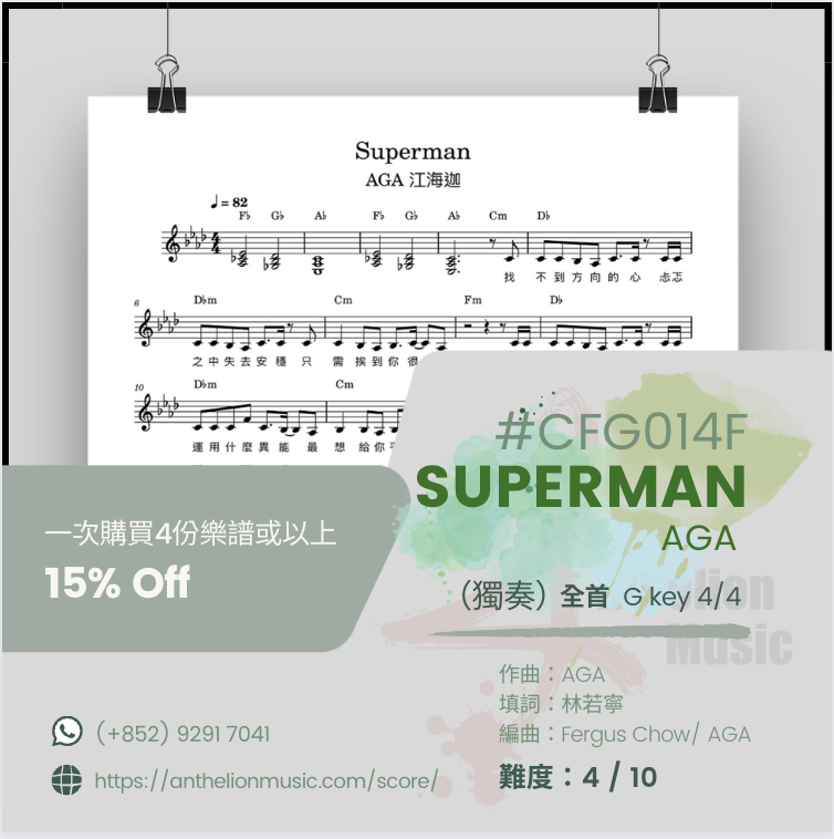 ⟪SUPERMAN⟫ [右手主旋律五線譜+ CHORDs// 獨奏譜]