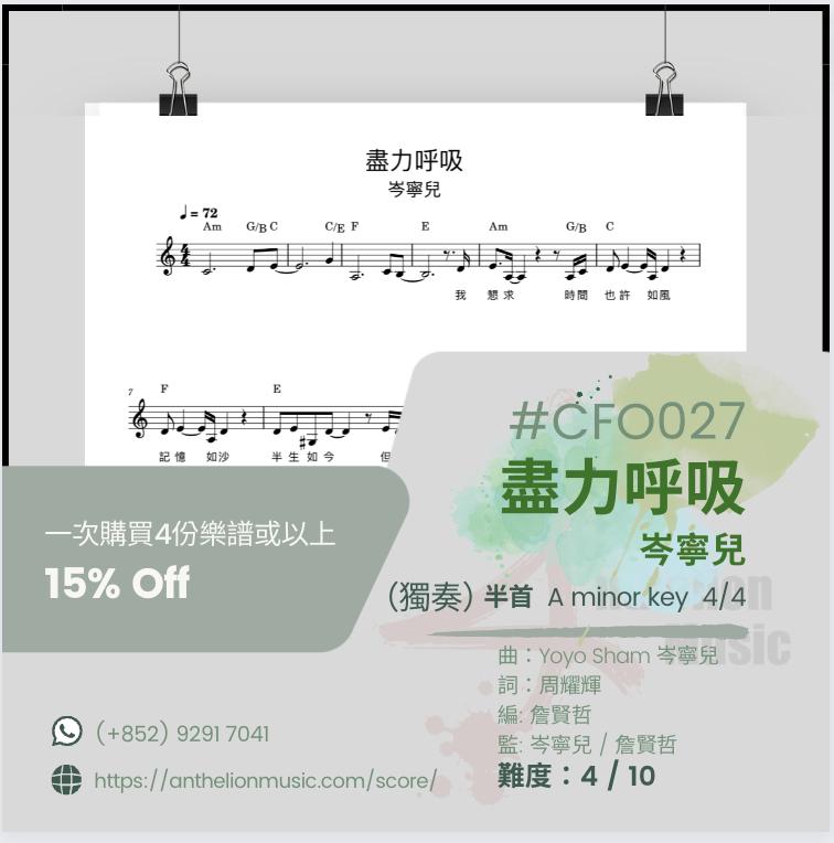 ⟪盡力呼吸⟫ [右手主旋律五線譜+ CHORDs// 獨奏譜]