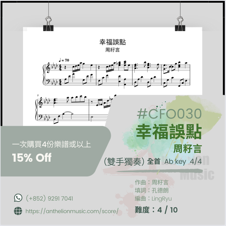 ⟪幸福誤點⟫ [右手主旋律五線譜+ 左手伴奏五線譜//雙手獨奏譜]