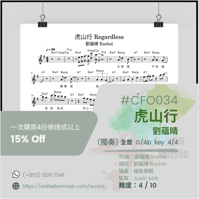 注意購買這個版本的現成樂譜,只有右手主旋律為五線譜(Lead Sheet)並沒有左手的五線譜。客戶可以選購雙手五線譜版本,或學習左手跟從樂譜所提供的樂弦,配以合適的Patterns來彈伴奏.💮