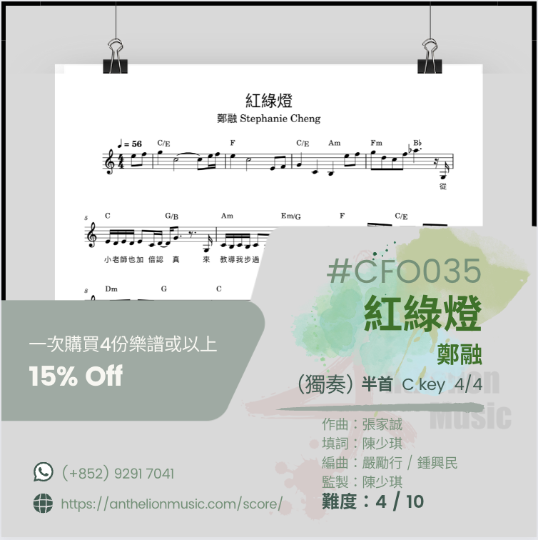 ⟪ 紅綠燈⟫ [右手主旋律五線譜+ CHORDs// 獨奏譜]