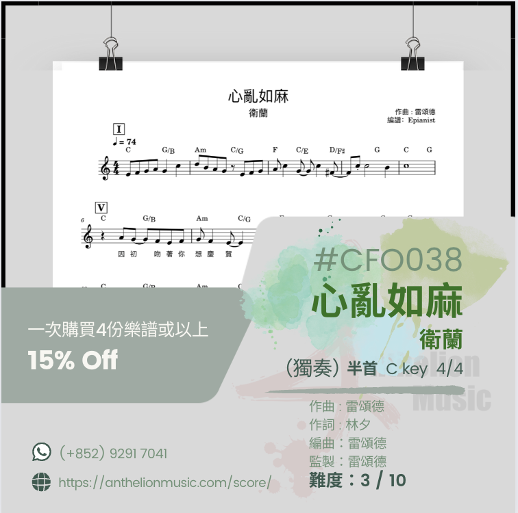 ⟪ 心亂如麻 ⟫ [右手主旋律五線譜+ CHORDs// 獨奏譜]