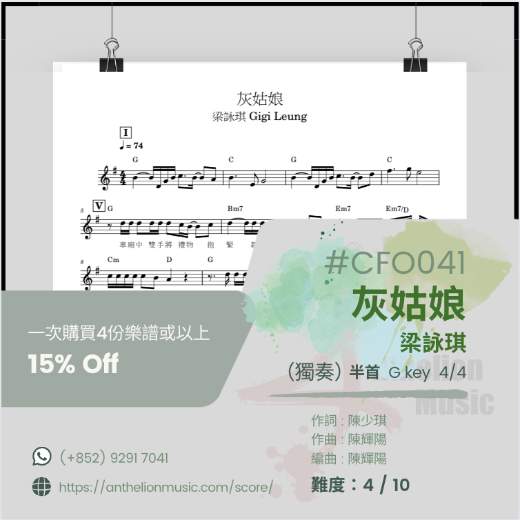 注意購買這個版本的現成樂譜,只有右手主旋律為五線譜(Lead Sheet)並沒有左手的五線譜。客戶可以選購雙手五線譜版本,或學習左手跟從樂譜所提供的樂弦,配以合適的Patterns來彈伴奏。💮