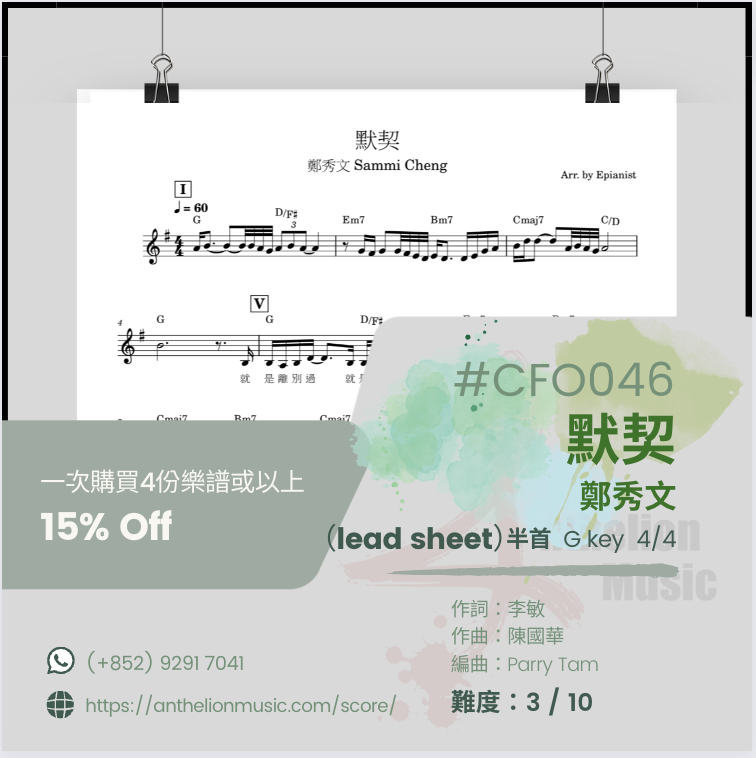 注意購買這個版本的現成樂譜,只有右手主旋律為五線譜(Lead Sheet)並沒有左手的五線譜。客戶可以選購雙手五線譜版本,或學習左手跟從樂譜所提供的樂弦,配以合適的Patterns來彈伴奏。💮