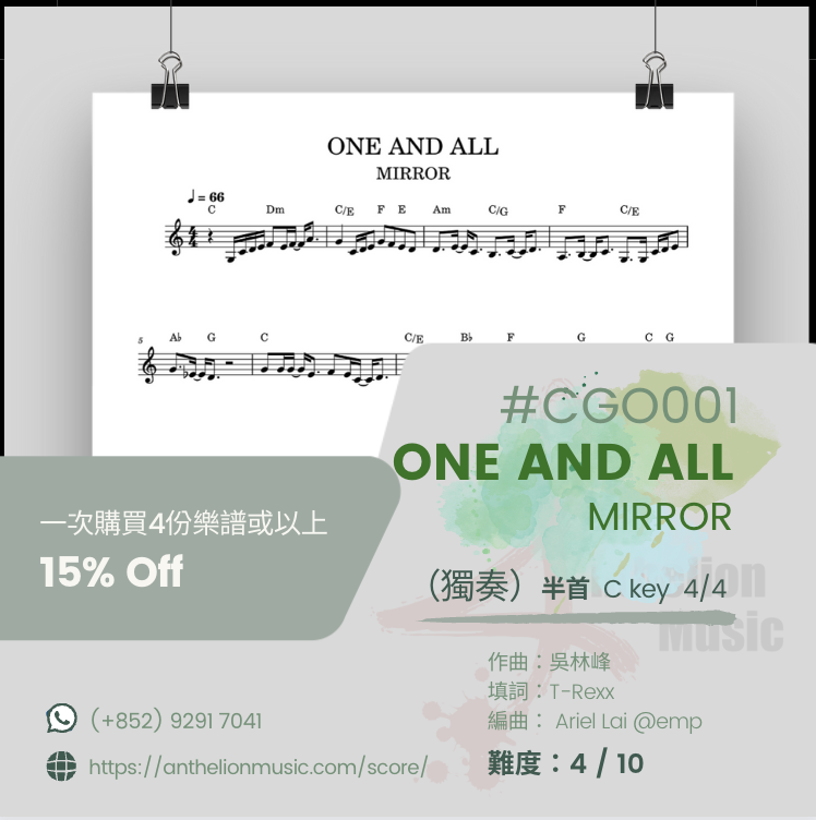 ⟪ONE AND ALL⟫ [右手主旋律五線譜+ CHORDs// 獨奏譜]