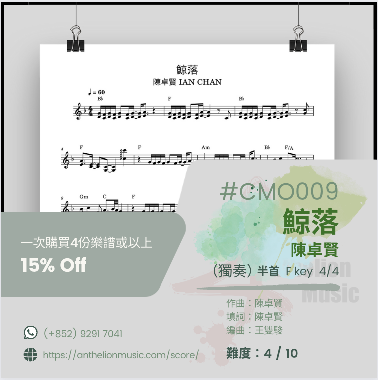 ⟪ 鯨落 ⟫ [右手主旋律五線譜+ CHORDs// 獨奏譜]
