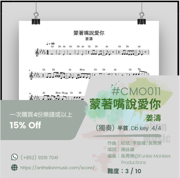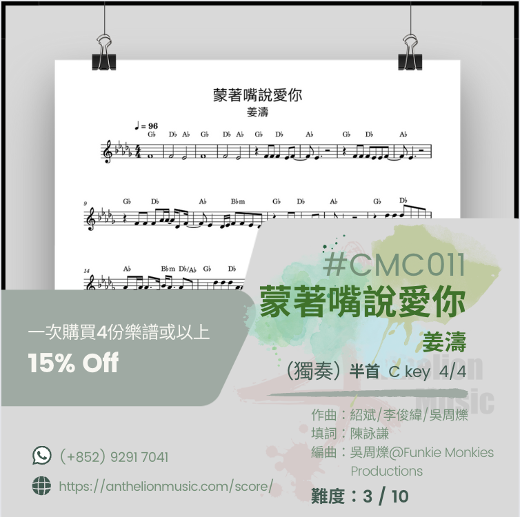 ⟪ 蒙著嘴說愛你 ⟫ [右手主旋律五線譜+ CHORDs// 獨奏譜]