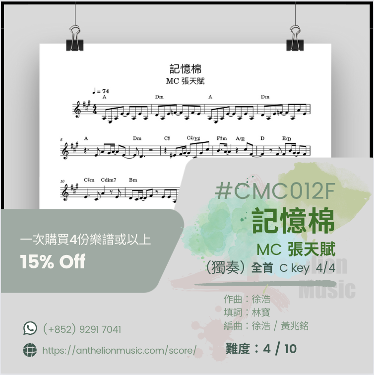 注意購買🏝️# CMO012 # CMO012F # CMC012F 版本的現成樂譜,只有右手主旋律為五線譜(Lead Sheet)並沒有左手的五線譜。客戶可以選購雙手五線譜版本,或學習左手跟從樂譜所提供的樂弦,配以合適的Patterns來彈伴奏。💮