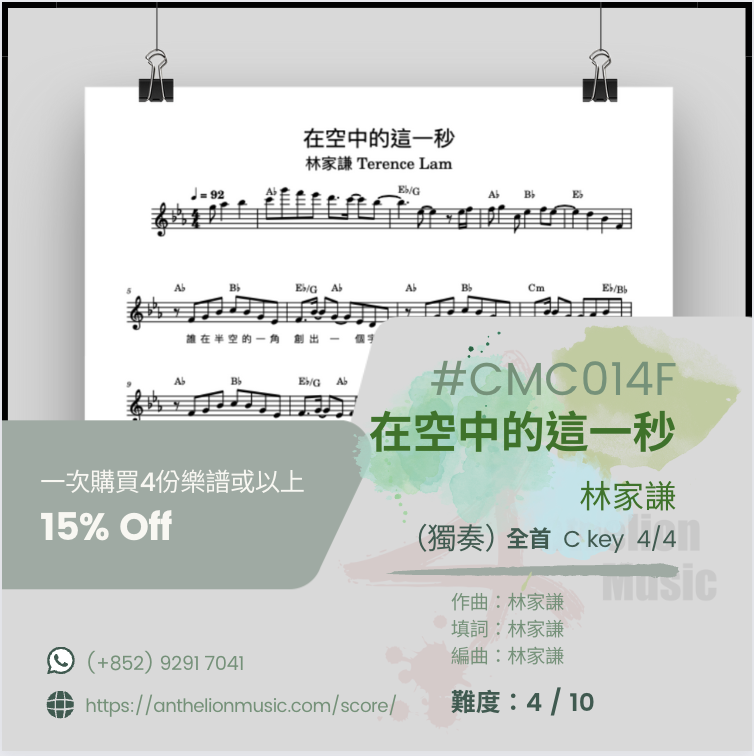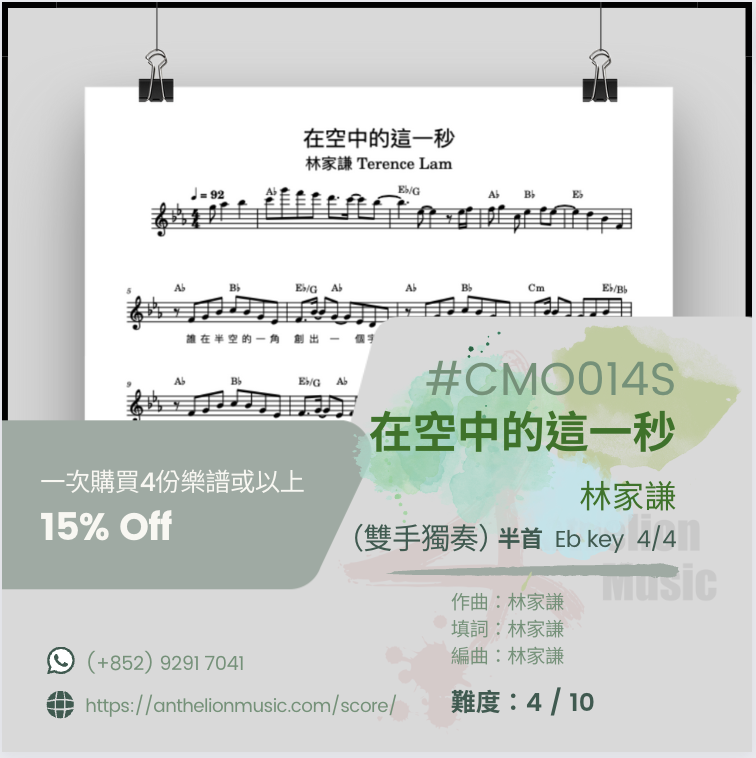 購買🏝️# CMO014S 版本的現成雙手五線樂譜,有右手主旋律五線譜和左手伴奏五線譜,客人若想自彈自唱或替別人伴奏的話,可選購🏝️# CMO014AF「伴奏譜」的版本💮
