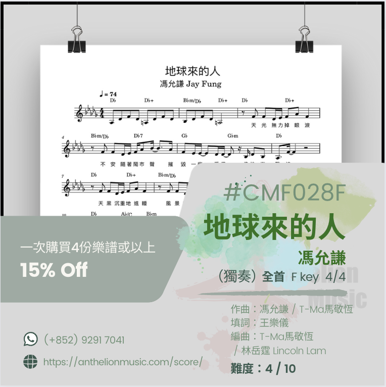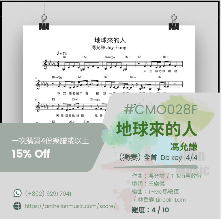 ⟪地球來的人⟫ [右手主旋律五線譜+ CHORDs// 獨奏譜]