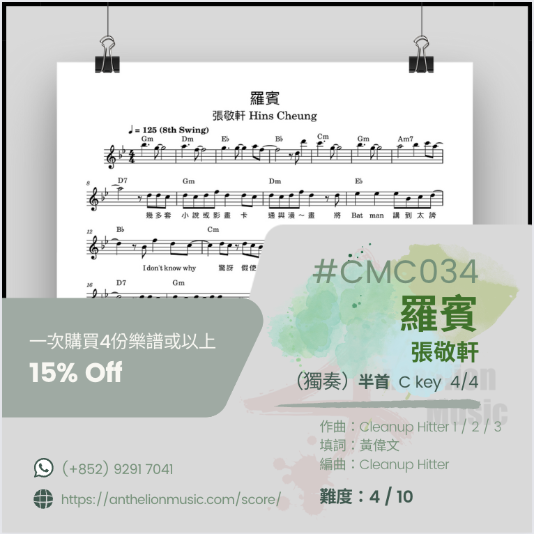 注意購買這個版本的現成樂譜,只有右手主旋律為五線譜(Lead Sheet)並沒有左手的五線譜。客戶可以選購雙手五線譜版本,或學習左手跟從樂譜所提供的樂弦,配以合適的Patterns來彈伴奏。💮