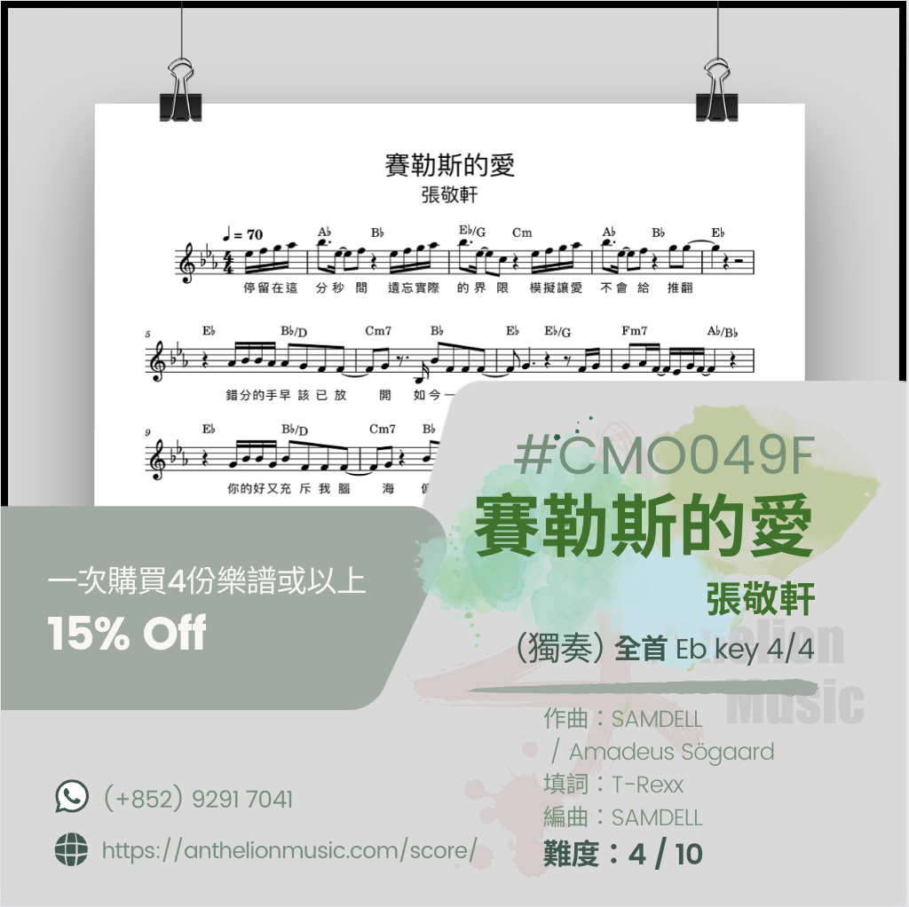 September 11, 2023 ⟪賽勒斯的愛⟫ [右手主旋律五線譜+ CHORDs// 獨奏譜] [右手主旋律五線譜+ 左手伴奏五線譜//雙手獨奏譜] September 11, 2023/ Joya.C #CMO049$50 半首(獨奏)# CMO049F$70 全首(獨奏)#CMO049SF$170 全首 (雙手獨奏) 🍃購買四首或以上可享有85折優專🍃注意購買🏝️# CMO049或 # CMO049F版本的現成樂譜,只有右手主旋律為五線譜(Lead Sheet)並沒有左手的五線譜。客戶可以選購雙手五線譜版本,或學習左手跟從樂譜所提供的樂弦,配以合適的Patterns來彈伴奏。☺️若購買# CMO049SF 版本的現成雙手五線樂譜,有右手主旋律五線譜和左手伴奏五線譜💮
