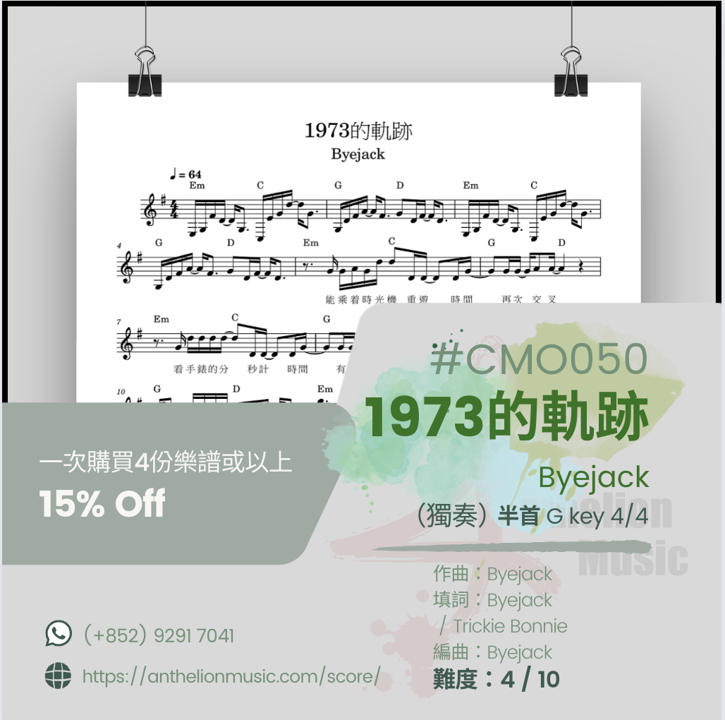 ⟪1973的軌跡⟫ [右手主旋律五線譜+ CHORDs// 獨奏譜] [右手主旋律五線譜+ 左手伴奏譜五線譜//雙手獨奏譜]