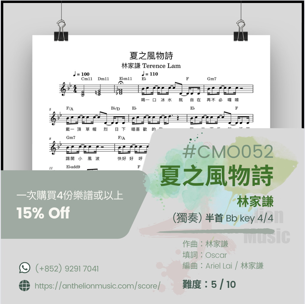 ⟪ 夏之風物詩⟫ [右手主旋律五線譜+ CHORDs// 獨奏譜]