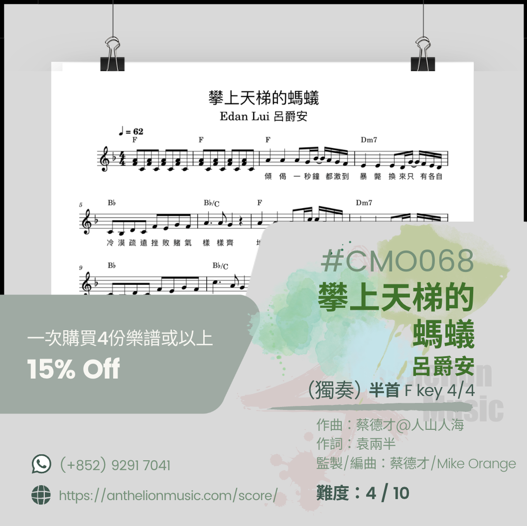 《攀上天梯的螞蟻》 [右手主旋律五線譜+ CHORDs// 獨奏譜]