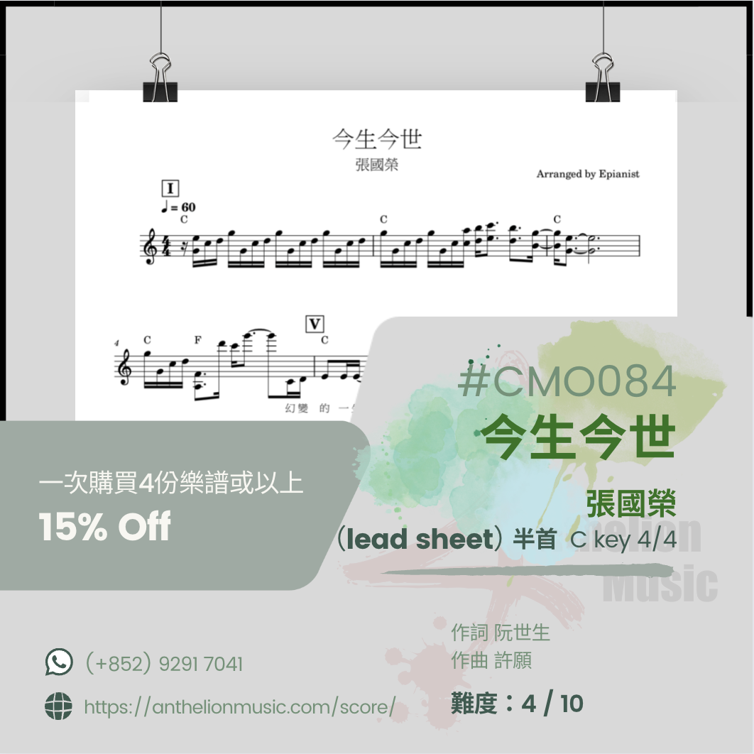 《今生今世》[右手主旋律五線譜+ CHORDs// 獨奏譜]