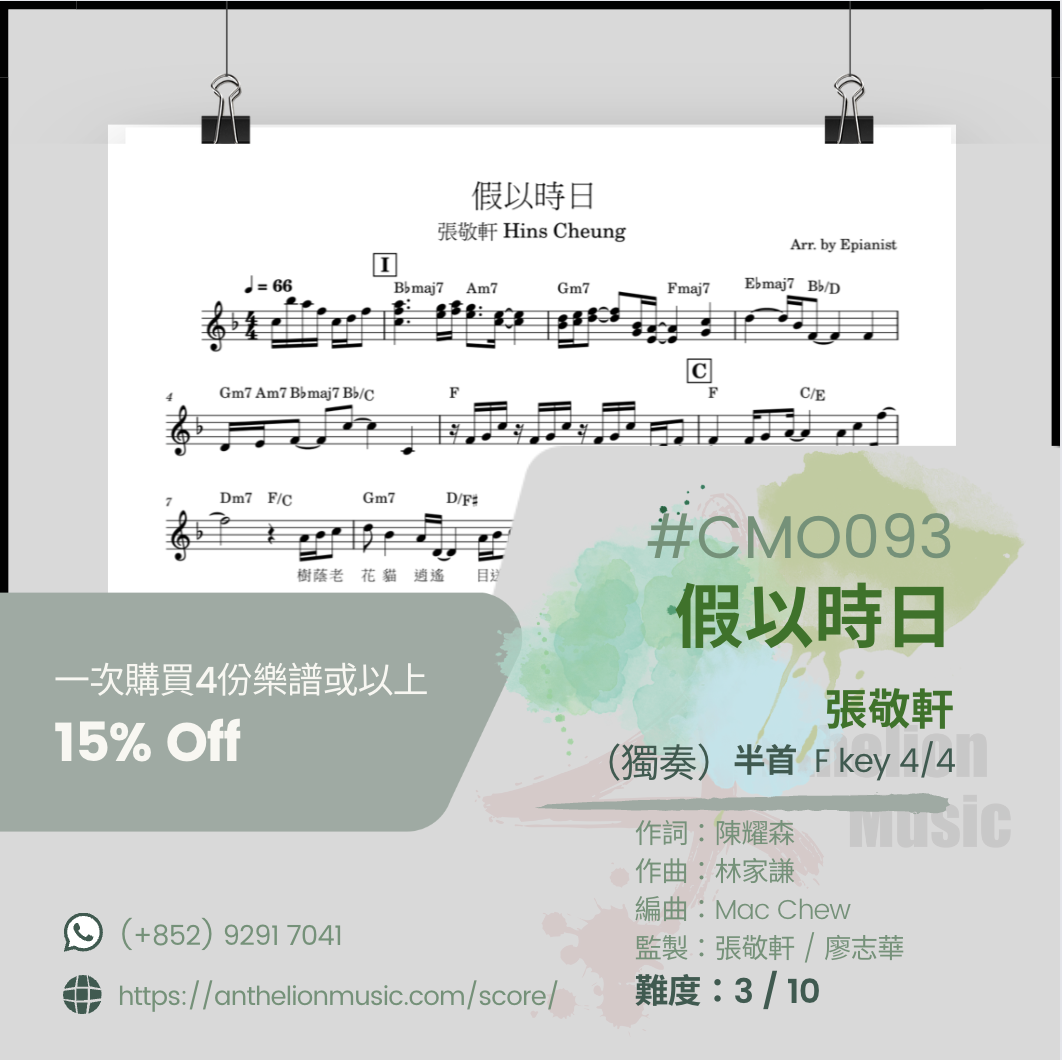 《假以時日》[右手主旋律五線譜+ CHORDs// 獨奏譜]