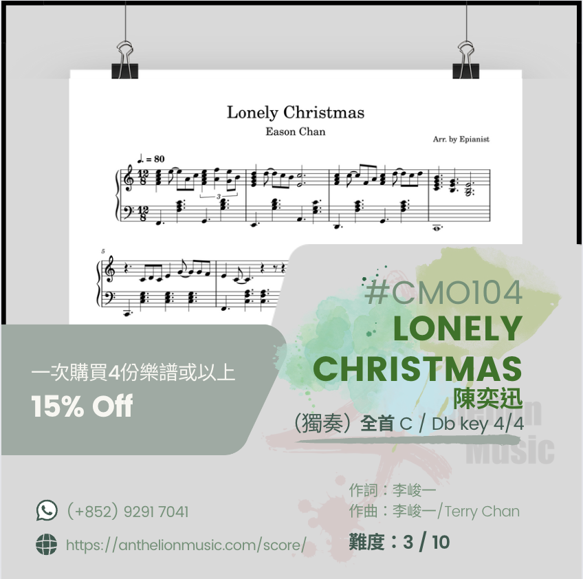 《Lonely Christmas》[右手主旋律五線譜+ CHORDs// 獨奏譜]